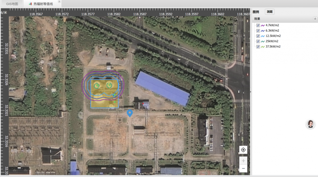根据万年一遇的各热辐射阈值等值线范围来调整各功能建筑物、设备设施的总图布置,设备设施的阈值可以按照设备厂家提供的阈值或参照SH/T 3226-2024《石油化工定量风险分析标准》附录M多米诺影响阈值中的火球、喷射火、池火对不同类型设备的多米诺阈值来确定。
