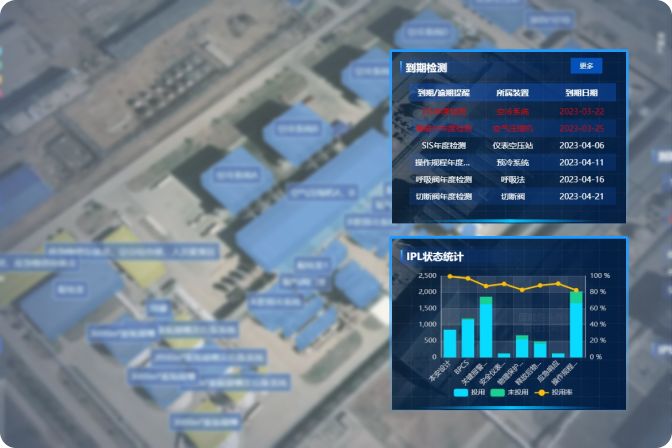 - 双重保护层深度监控:同步监控SIF控制回路异常(如报警、旁路),并全面追踪安全阀等物理屏障的检测及隐患状态。